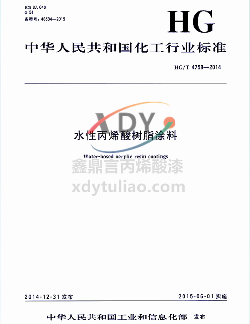 HG/T4565-2013鍋爐及輔助設備耐高溫涂料 備案號:41889-2013 中華人民共和國化工行業標準 HG/T4565-2013 鍋爐及輔助設備耐高溫涂料 High-temperature resistant coatings for boilers and auxiliary equipemts 2013-10-17發布 2014-03-01實施 中華人民共和國工業和信息化部 發布 1、范圍 本標準規定了鍋爐及輔助設備耐高溫涂料產品的分類要求、試驗方法、檢驗規則及標志、包裝和貯存等內容。 本標準適用于電站用、工業用、船用、生活用等鍋爐以及與鍋爐配套的輔助設備用耐高溫(200℃以上)涂料。 2、規范性引用文件 下列文件對于本文件的應用是必不可少的。凡是注日期的引用文件,僅所注日期的版本適用于本文件。凡是不注日期的引用文件,其最新版本(包括所有的修改單)適用于本文件。 GB/T224鋼的脫碳層深度測定法 GB/T1728-1979 漆膜、膩子膜干燥時間測定法 GB/T1735-2009 色漆和清漆 耐熱性的測定 GB/T1766 色漆和清漆 涂層老化的評級方法 GB/T1771-2007 色漆和清漆 耐中性鹽霧性能的測定 GB/T3186 色漆、清漆和色漆與清漆用原材料 取樣 GB/T8170 數值修約規則與極限數值的表示和判定 GB/T8923.1 涂覆涂料前鋼材表面處理 表面清潔度的目視評定 第1部分:未涂覆過的鋼材表面和全面清除原有涂層后的鋼材表面的銹蝕等級和處理等級 GB/T9271 色漆與清漆 標準試板 GB/T9278 涂料試樣狀態調節和試驗的溫濕度 GB/T9286-1998 色漆和清漆 漆膜的劃格試驗 GB/T9750 涂料產品包裝標志 GB/T13288.1 涂覆涂料前鋼材表面處理 噴射清理后的鋼材表面粗糙度特性 第1部分:用于評定噴射清理后鋼材表面粗糙度的ISO表面粗糙度比較樣塊的技術要求和定義 GB/T13491 涂料產品包裝通則 3、產品分類 本標準將鍋爐及輔助設備耐高溫涂料分為2類,A類為熱處理防腐涂料,在鍋爐及輔助設備加工制造的熱處理過程中,防止高溫環境下金屬的氧化和脫碳;B類為使用保護涂料,在鍋爐及輔助設備的存放、運輸、安裝等過程中防止金屬銹蝕,以及在運行過程中防止高溫干態條件下的金屬腐蝕。 4、要求 4.1、A類鍋爐及輔助設備耐高溫涂料應符合表1的技術要求。